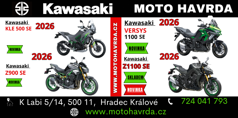 Moto Havrda je oficiální dealer motocyklů značky KAWASAKI. Také nabízíme širokou nabídku skútrú a elektroskútrú! značek KAWASAKI, PEUGEOT a SYM, HORWIN v Hradci Králové. Od uvedených značek nabízíme kompletní nabídku. Pokud hledáte záruku kvality, jste na správné adrese. Otevírací doba: Po: 9:00 – 17:00 Út: 9:00 – 17:00 St: […]